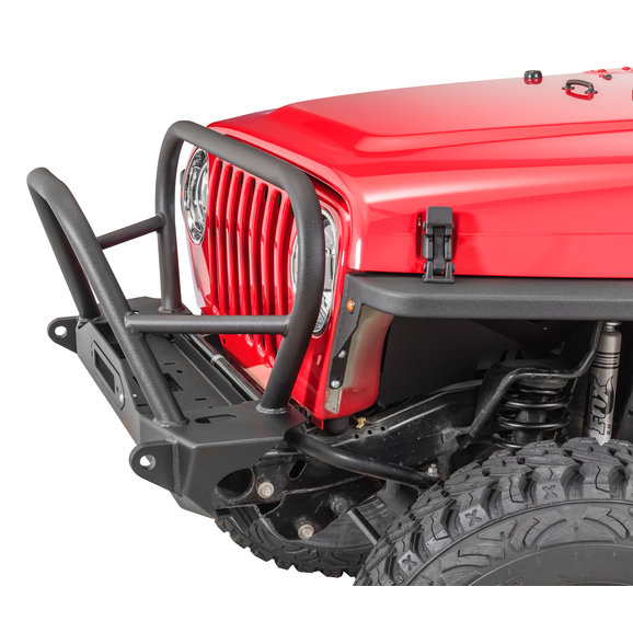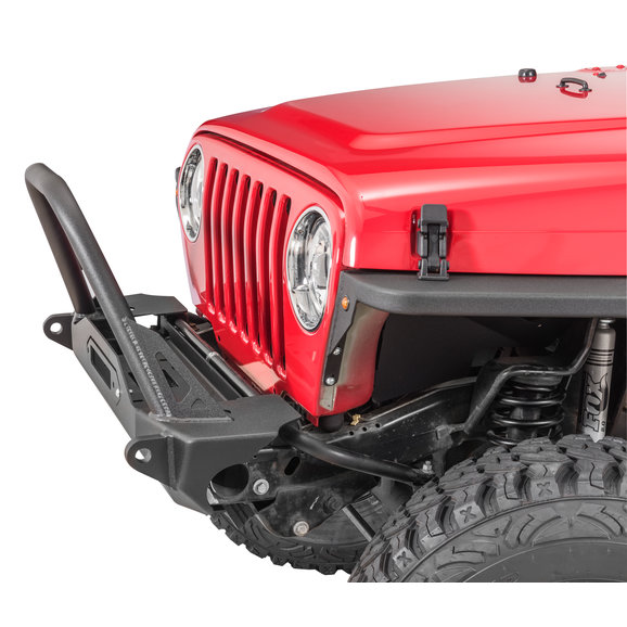 The JCR Mauler Front Recessed Winch Stubby Bumper is designed for those looking maximum clearance and added grille and hood protection. These bumpers are factory replacements and have an easy bolt on application and come standard with a integrated winch mount, two ¾” thick D-ring tabs and Hi-Lift® jack points. bumper is available in tough textured black powder coat finish or bare steel and boast and lifetime warranty! They have a dedication to quality fabrication and are proud to build their products in Portage, Michigan on American made manufacturing equipment.