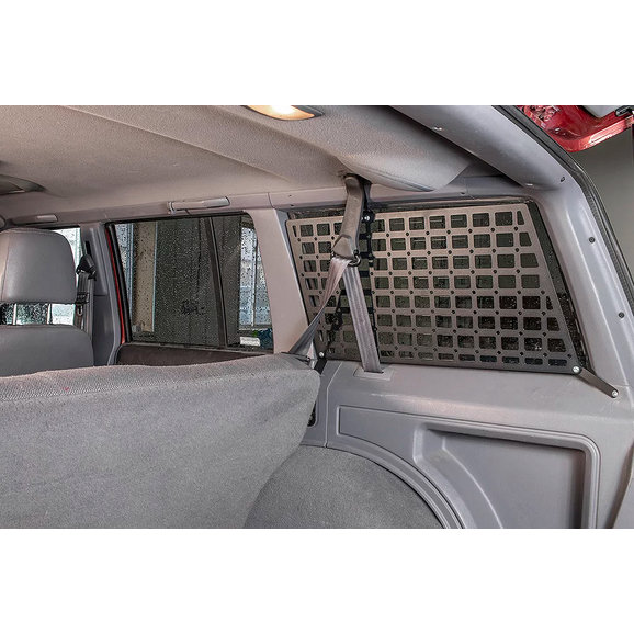 With all the gear you have for when you hit the trails the inside of your Cherokee XJ might be cluttered and messy. Get rid of that clutter with the Rear Window MOLLE Panel to help organize your gear out of the way and securely. This window panel can fit either side of your Jeep and is made from CNC cut .120" steel for a precise fit then coated with a 2 stage textured black powder coat to prevent corrosion.
