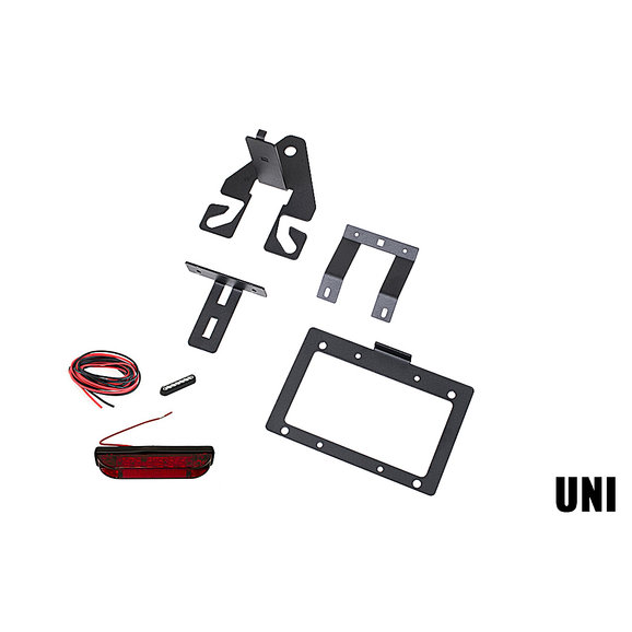 Have you installed a rear bumper that requires relocation of your license plate? If so, this Spare Tire Mounted License Plate Bracket is what you have been looking for. Made from CNC cut 1/8" thick American steel. Designed to work with 5x4.5", 5x5", 5x5.5", 6x5.5" bolt patterns. Fully adjustable for wheels with different backspacing. Includes an LED light to illuminate your license plate. Wiring is required. Made in the USA!