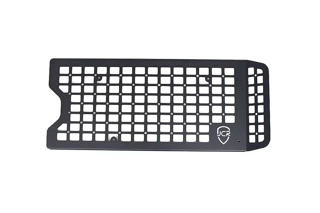 The Tailgate MOLLE Panel is a great way to keep the cargo area of your Wrangler JL clean and clutter free. No longer will you have your tow strap or other recovery gear rolling around as you navigate the trails. This panel is made from strong steel and will hold this like tow straps, MOLLE bags or anything else you can fit on it to keep it from rolling around and taking up valuable space. Proudly Made in the U.S.A.!