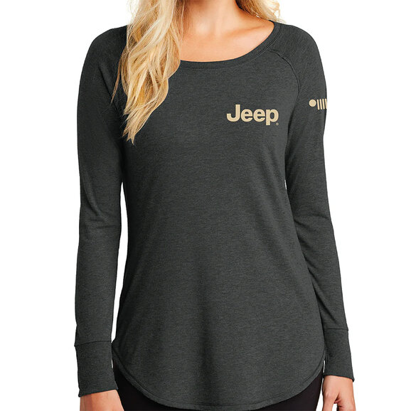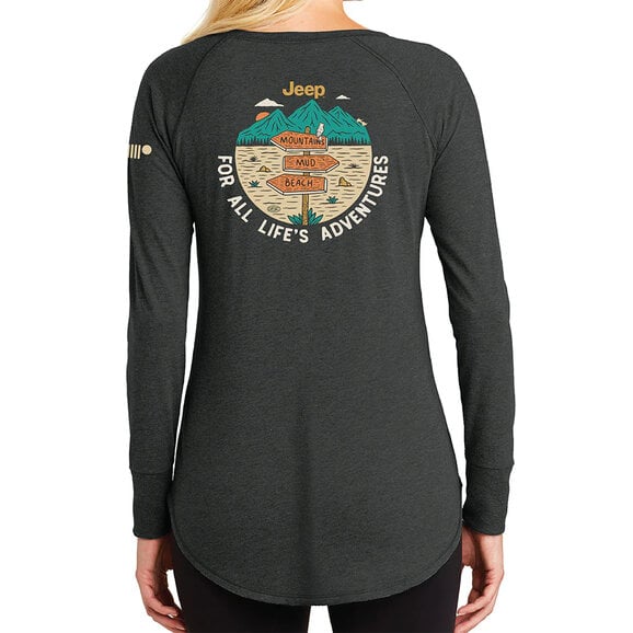 Jeep Merchandise Ladies Jeep For All Life's Adventures Long Sleeve Tunic T-shirt in Heather Black Options