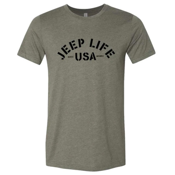 Jeep Merchandise Men's Jeep Life USA T-Shirt in Heather Military Green Options