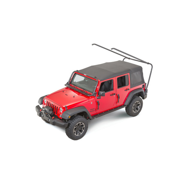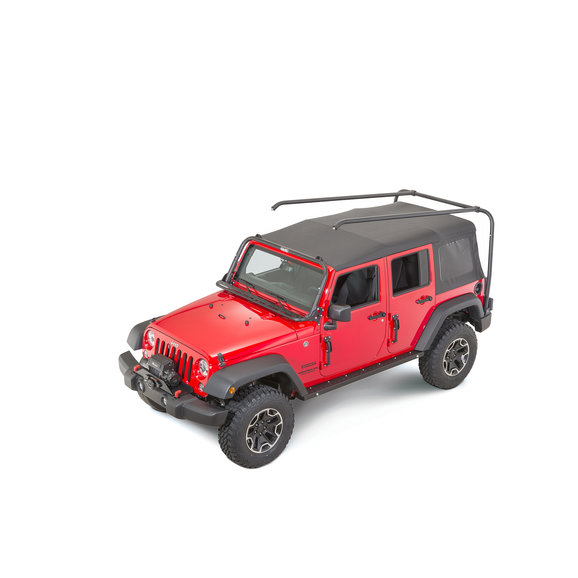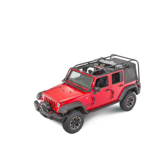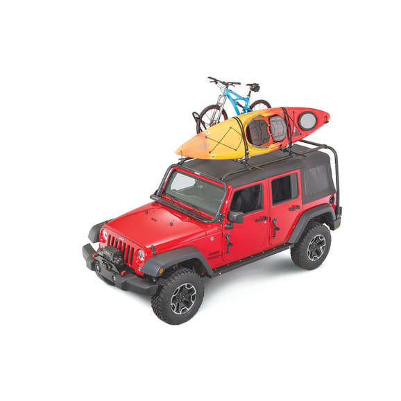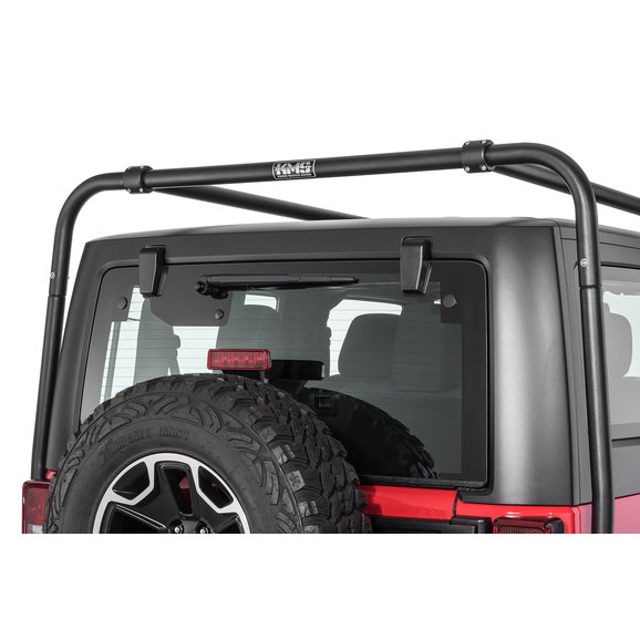 The all NEW Kargo Master Congo Sport Rack is a light weight and economical alternative to the Pro Racks. The Sport Rack serves as the foundation for installing all KMS platform racks, basket racks, and load bar systems and is designed to work with all soft and hard top models. Racks are constructed of heavy duty 2” diameter x .095” thick steel tubing and include roof bars, windshield hoop and rear hoop. The quick disconnect spreader bars provide a sturdy assembly that allows the soft top to be easily raised or lowered. The low profile design rises only 5.5” above the top to optimize clearance for garages and off road trails and attaches with no drilling or modifications to the Jeep. The rack and accessories feature marine-grade black powder coat finish to resist corrosion and abrasion. Rack configurations have a 350 lb. dynamic travel capacity rating with a static weight capacity of 650 lbs. Limited lifetime warranty. Made in USA.