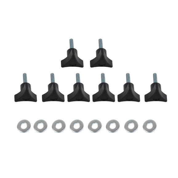 The Quick Release Hardtop Screw Kit from Kentrol makes removing and re-installing the Hardtop on your Jeep a breeze. The kit includes 8 quick release screws and washers that replace the bolts along the side of the hardtop where it attaches to the body tub. No more searching for the correct sized tools! Simply unscrew the easy to operate hand turn knobs, and then pull off the top. This kit comes with all necessary hardware for a no hassle installation. Made in the USA!