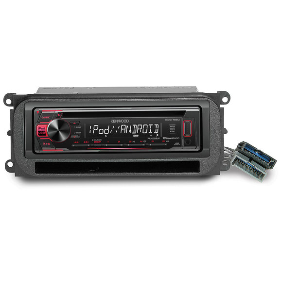 Quadratec has taken the guesswork out of installing your new stereo! We have put together this kit that includes the stereo with a plug and play installation kit with custom dash bezel to install quickly and easily into your Jeep without the need for any cutting and splicing. The KDC-168U by Kenwood offers great features at a very affordable price. This CD receiver not only sounds great, it includes a handy front auxiliary input with an easy front panel connection for your compatible USB-enabled devices such as iPhone, iPod as well as compatible Mass Storage Class devices like smartphones, USB thumb drives and portable hard drives. The USB input will allow you to charge and control the music playback with the Kenwood Music Play application on your Android smartphone. The Drive EQ boosts specific frequencies in the audio signal to overcome the negative impact of road noise. Make the installation easy with the purchase of The Kenwood KDC-168U stereo with our Quadratec Exclusive installation kit. You’ll get absolutely everything you need for an easy, professional looking install including a dash mount kit and our easy plug n play wiring harness. With this harness, there’s absolutely no need to cut or splice any wiring. Simply use the new harness instead of the one that comes with the radio, and you’ll simply plug one end into your factory plug in the dash, and the other to the back of the radio.