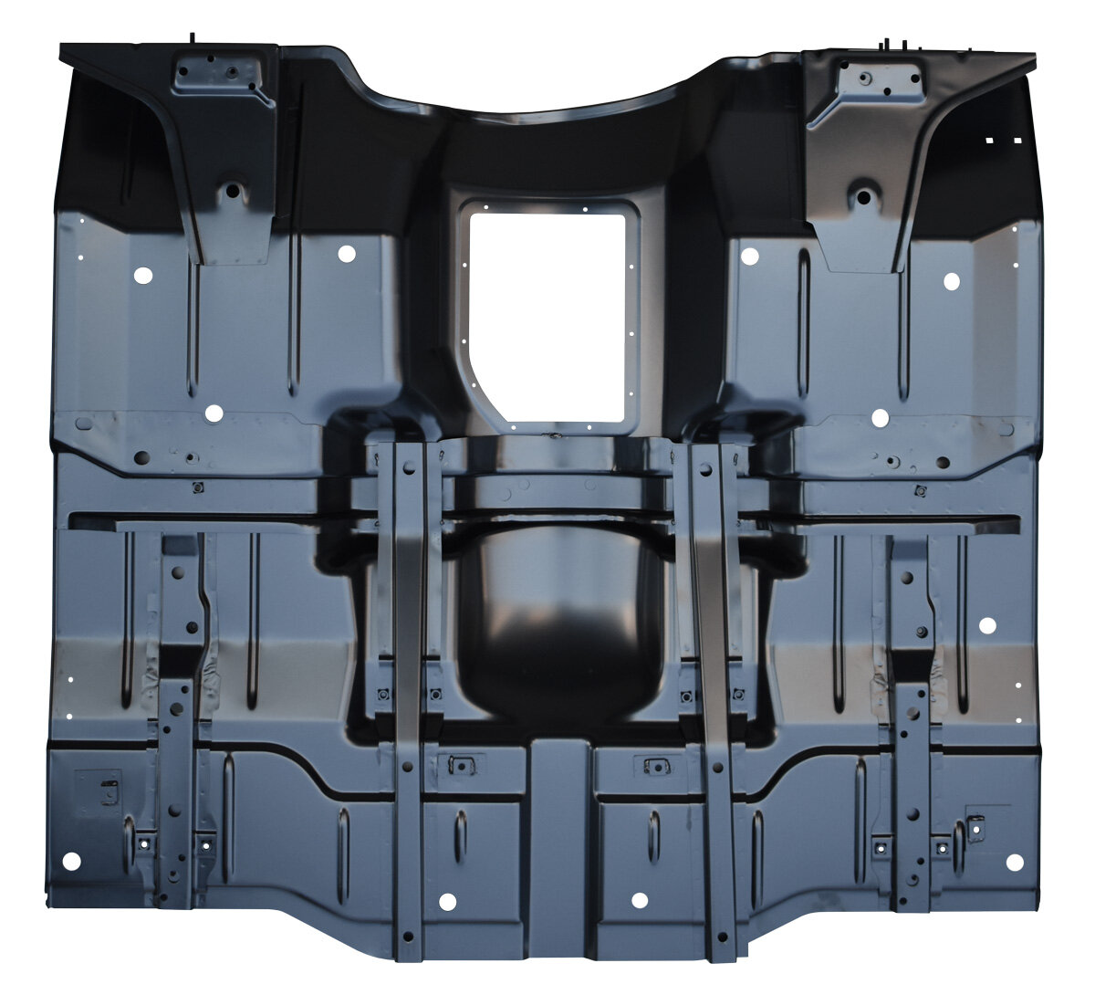 The Key Parts Front Floor Pan is a direct replacement for the CJ7 and CJ8 Scrambler. Featuring factory located holes for drainage, body mounting and hardware mounting, as well as nuts welded in place. Inboard and outboard floor support for left and right sides are installed underneath for an even easier restoration.