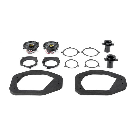 Everyone loves jamming out while driving around in their Wrangler JL so why not upgrade from those factory speakers for a more enjoyable drive! With this Overhead Sound Bar Speaker Kit, you can do just that with a set of Kicker Speakers giving you superior sound for a better audio experience while maintaining the factory look. The Kicker CS speakers feature a stamped-steel framework that supports the rigid polypropylene cone. The speaker cone itself features EVC (Extended Voice Coil) for superior sound quality. These kits are a Quadratec exclusive that is a simple plug & play fit & reuses the factory speaker grills.