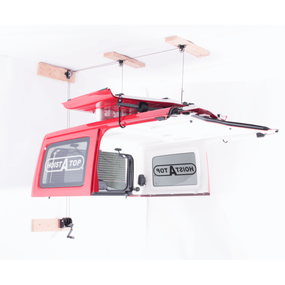 Stores and Protects: The Crank Hoist-A-Top from Lange Originals features rubber coated hooks and foam padding to avoid marring or scratching the finish of your expensive factory or aftermarket hardtop. Unlike other lifts, the Hoist-A-Top can be used to store your top up in the air, and out of the way.