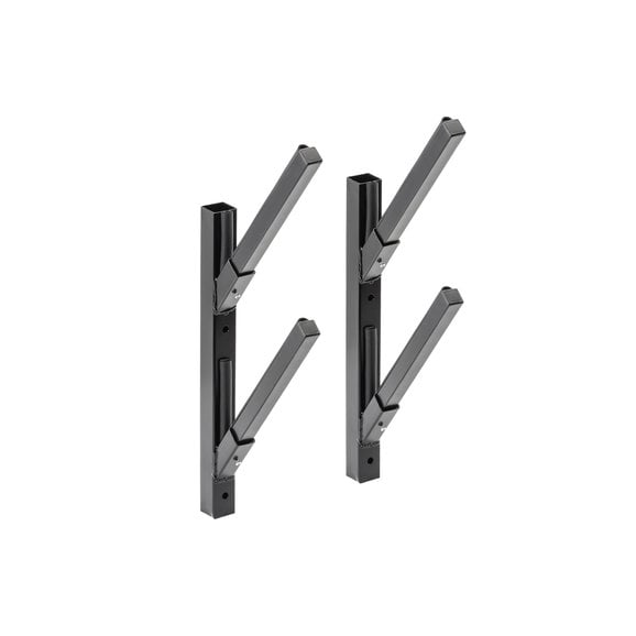 Storing your hardtop roof panels is easy and convenient with a Lange Roof Panel Wall Storage Device. Avoid leaning your valuable Roof Top panels against the wall or the concrete floor! Lange’s sturdy steel brackets with protective foam rubber cushions mount to your garage wall allowing you to safely and easily store your roof top panels. Keep your garage space neat and organized while avoiding potential damage to your hard top roof Panels! Kit comes complete with mounting hardware and installation instructions.