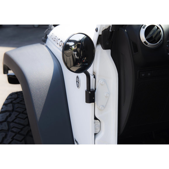 Having side view-mirror visibility when your doors are off is an essential safety precaution. This Quick Mirror I Pair in Black is the perfect way to quickly add a level of safety to your doorless Jeep Wrangler JL. The mirror heads are made from durable Delrin and include black anodized mounting hardware with included quick-release thumb screws. Simply mount the brackets into your door hinge, tighten, adjust to your preferences, and head out! Made in the USA!