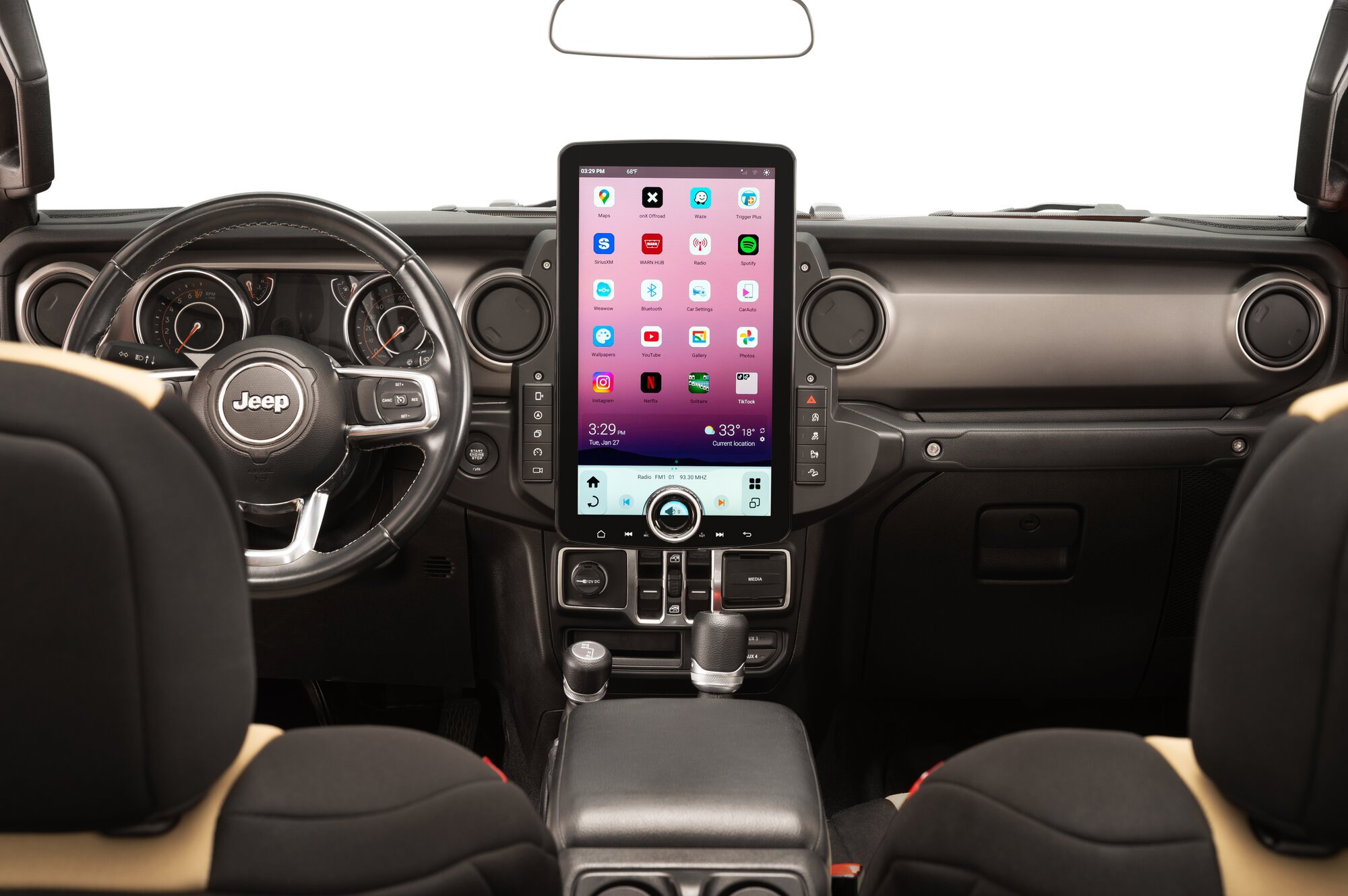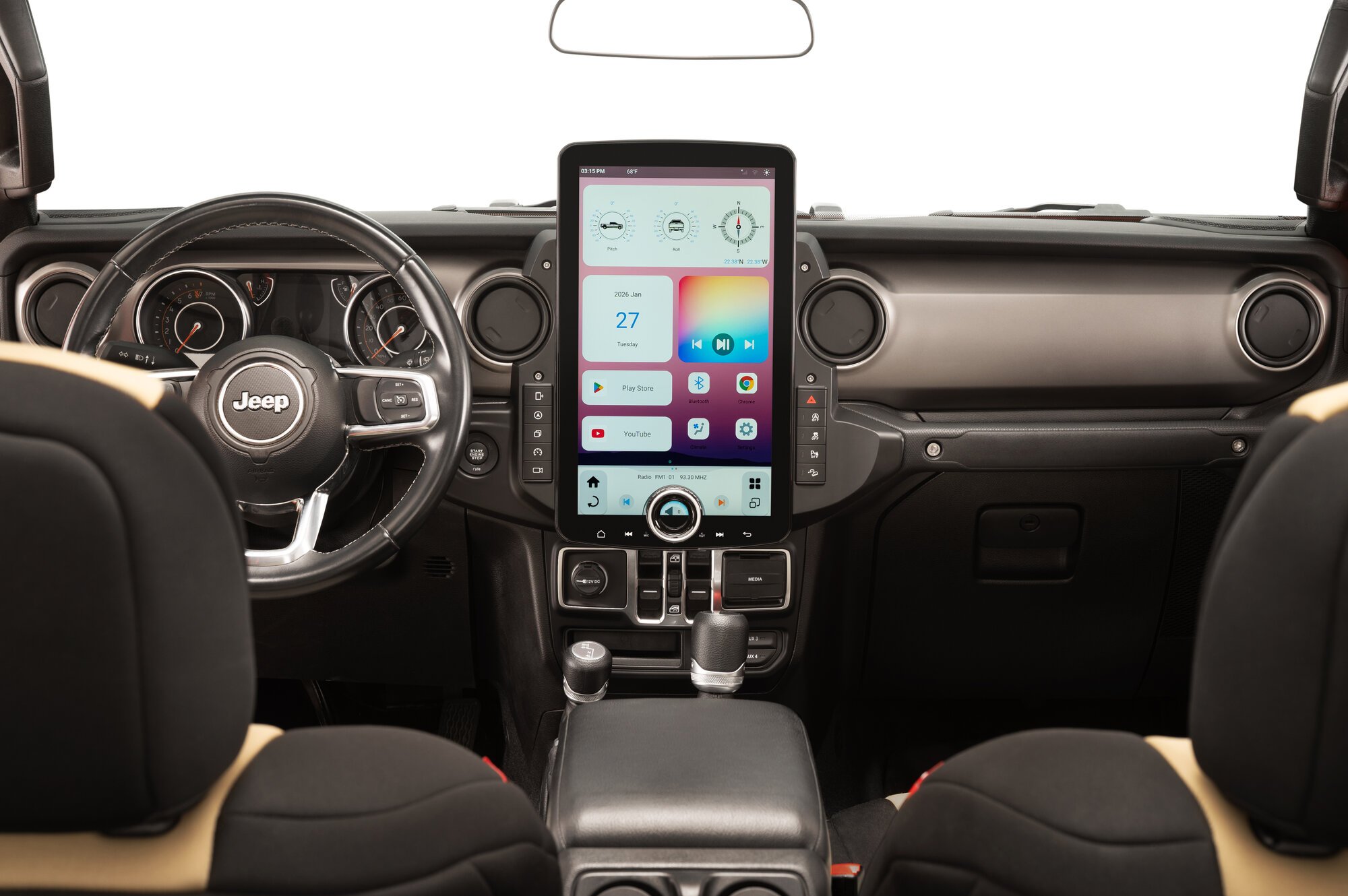 Upgrade your Jeep Wrangler JL or Gladiator JT (2018-2023) with the Linkswell GEN XL T-Style Mulitmedia System, featuring a massive 15.6-inch HD touchscreen powered by Android 11 and a lightning-fast Qualcomm 8-core processor. With 8GB RAM and 128GB storage, this system delivers unmatched speed and multitasking for navigation, streaming, and apps via Google Play. Enjoy wireless Apple CarPlay and wired/wireless Android Auto, built-in Wi-Fi, and optional SIM card support for real-time connectivity. The innovative on-screen X-KNOB lets you control volume, fan speed, and temperature with ease, while integrated climate controls retain OEM functionality. Packed with premium audio features like a 4x50W DSP amplifier, 16-band EQ, 4-volt RCA preouts, and SPDIF optical output, this unit ensures superior sound quality. Additional highlights include HDMI input/output, Bluetooth 5.0, three camera inputs (expandable to six), factory camera retention, and support for EV and off-road pages. This XL upgrade transforms your Jeep’s dashboard into a cutting-edge infotainment hub with luxury and performance in mind.