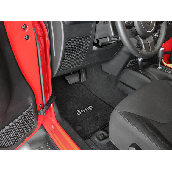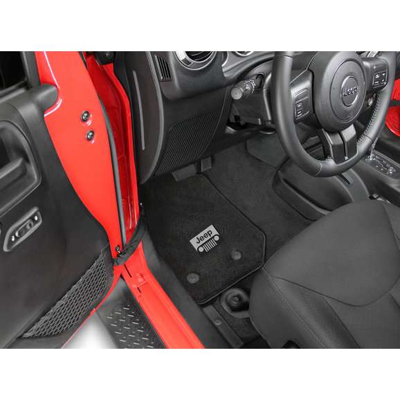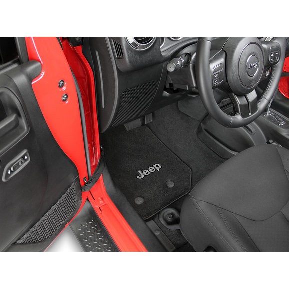 With a set of Lloyd All Weather Carpeted Floor Liners, Wrangler JL 2-Door owners can enjoy the comfortable feeling of carpet that has the durability of floor liners. The thick 40 oz. polypropylene heavy pile carpeting has a waterproof soft rubber nib backing to ensure long life. The matching surged polypropylene yarn edging will not tear or fray over time. The built in safety mat fasteners are designed for the Wrangler JL 2-Door for quick and easy installation and will secure the mat to the floor. The Jeep logo is front and center and is embroidered in polyester threading. Purchase the front pair alone, or a 4 piece kit for the front and rear.