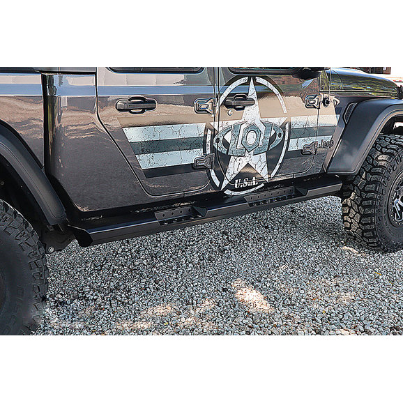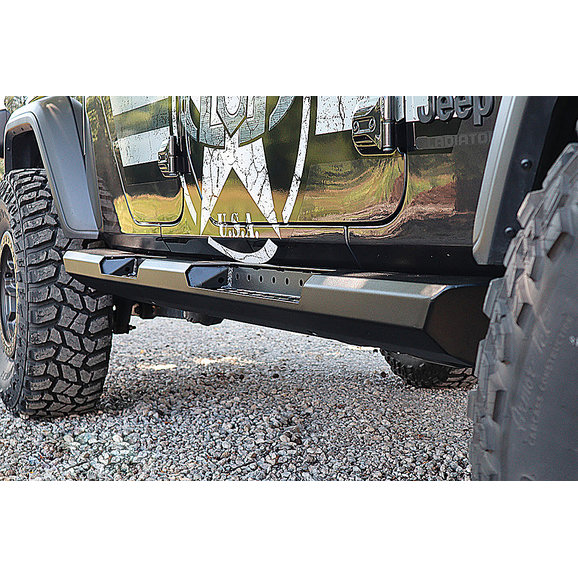 The LoD Offroad Destroyer Rocksliders for Jeep Gladiator JT 4-Door feature both rocker protection and usable steps for trail or road use. The 3-piece high-strength steel frame-mounted Rocksliders are easy to install, have no drilling, and have a complete bolt-on design that has been tested. The Destroyer Rocksliders come in bare Steel or with a super durable 2-stage corrosion-resistant powder-coated finish.