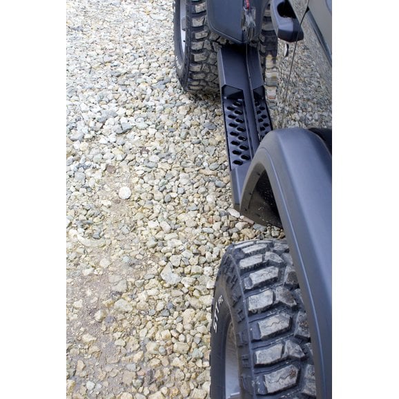 Design: These sliders are made for the true off-road adventurer by helping protect your rocker panels while on the trails as well as making sure you do not get hung up on a rock when crawling over them. A large footing area that has a traction pad to prevent slipping no matter how muddy your shoes are when getting in and out of your Wrangler JL.