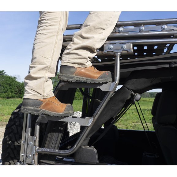 Simple Bolt-on: Bolt-on Side Ladder will fit all Destroyer Roof Racks. Two step up flat surfaces (per side) to access the top of your Roof Rack.