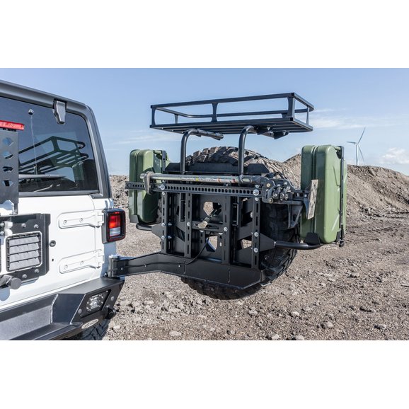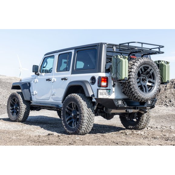 Features: High strength light weight military grade steel for the ultimate protection when you are out on the trails. Adjustable gas can mounts along many other accessory mount options. Better tire clearance with the ability to carry a 40" tire with no as cans mount or up to a 37" tire with a gas can mount.