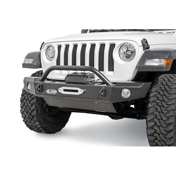 LōD Offroad makes some incredibly tough off-roading accessories for your Jeep. The Signature Series Mid-Width front bumper for Wrangler JL & JT models is constructed of a combination of 10 gauge, 3/16", and 1/4" powder-coated steel. The mid-sized design will offer moderate entrance and departure angles while still providing a decent amount of protection. It's great for Jeepers that spend a lot of time on-road but can be confident when they venture out on the trail. The integrated winch plate comes standard to fit most winch styles up to 12k or there is an option for the Warn Power Plant winch. It even has cutouts to accommodate the factory Jeep fog lights. Made in the USA.