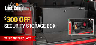 The Lost Canyon storage box is a necessity, especially when it comes to doors/top off season. Keeping valuables and recovery gear safe when most exposed. The included molle panels increase storage ability and are a nice touch for storing med kits/accessories. The added rubber mat is also a nice touch. Plenty of access points to run power to chargers or lights on the inside. Can’t say enough good things, and bonus no drilling or cutting required for installation… locks into factory mounting points with the included hardware.