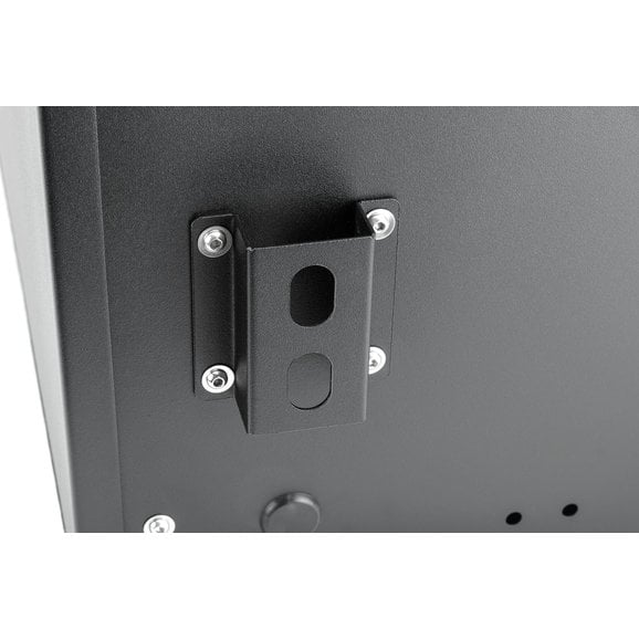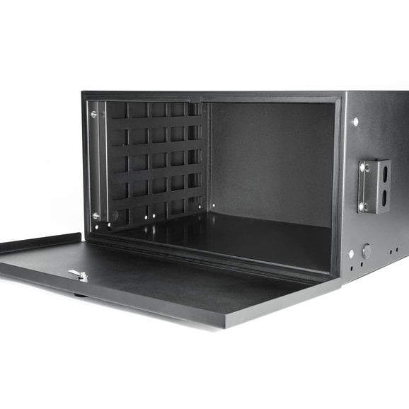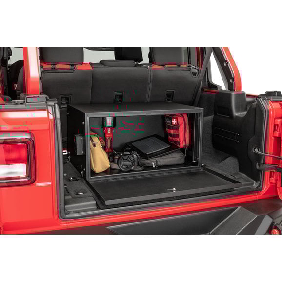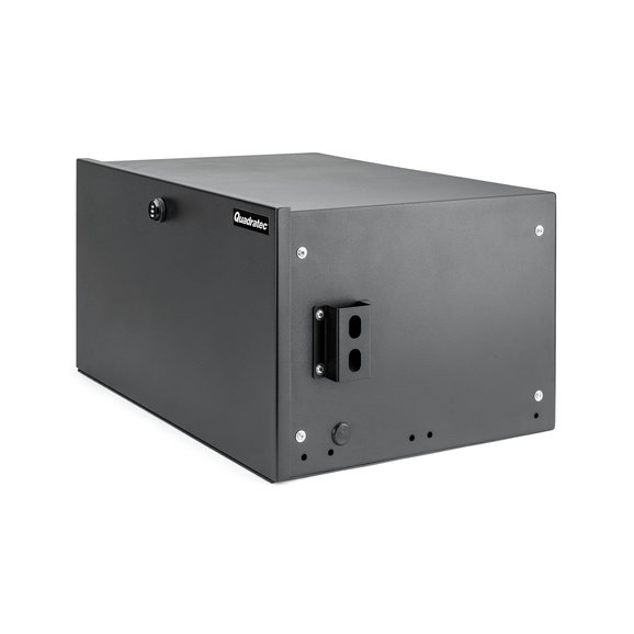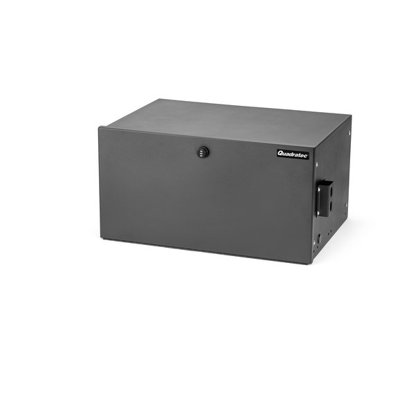 A durable storage solution that is simple to install, includes functionality and security, and doesn't interfere with other cargo-area accessories — that is the innovative Lost Canyon® Trail and Tool Security Storage Box. This heavy-gauge alloy steel cargo solution includes weathertight seals to lock out moisture, while the exterior textured black coating provides years of long-lasting performance. It installs with simple hand tools to factory mounting locations, meaning no drilling or other modifications needed. A rubberized mat covers the interior tray and prevents cargo from sliding around or rattling, and a three-digit programmable lock eliminates the need for a key — saving time when you need to quickly access interior contents. Box utilizes two exterior spots for hook-type tie downs and bungee cords, while included steel webbing creates the perfect spot to attach MOLLE bags for additional storage options. Also, this security storage accessory does not interfere with the factory subwoofer, includes an opening for an AC power cord to charge electronics and works with Quadratec's Tailgate Table. All installation hardware included and features a three-year warranty.