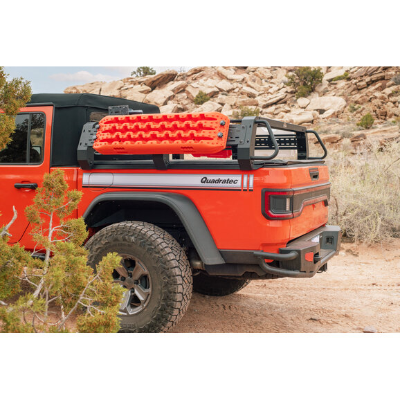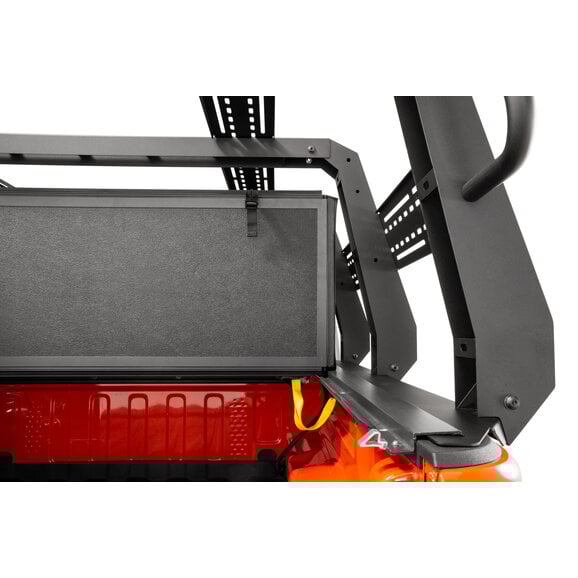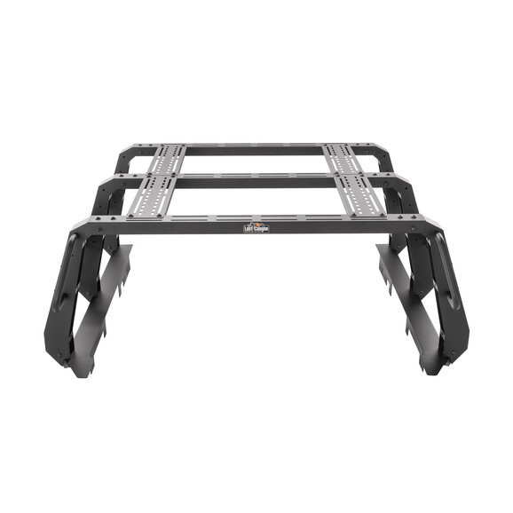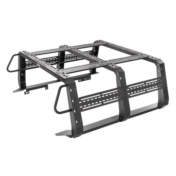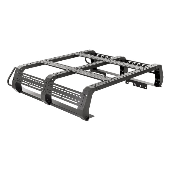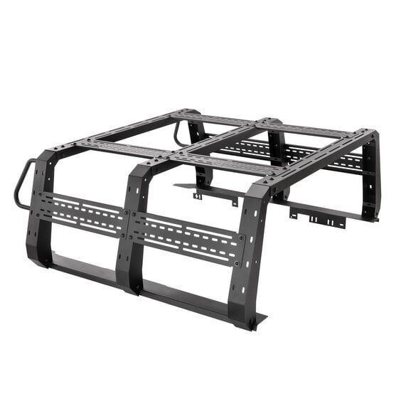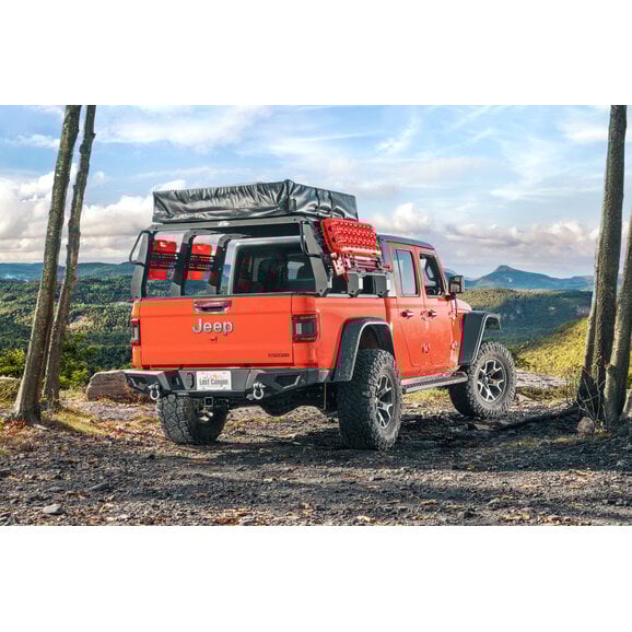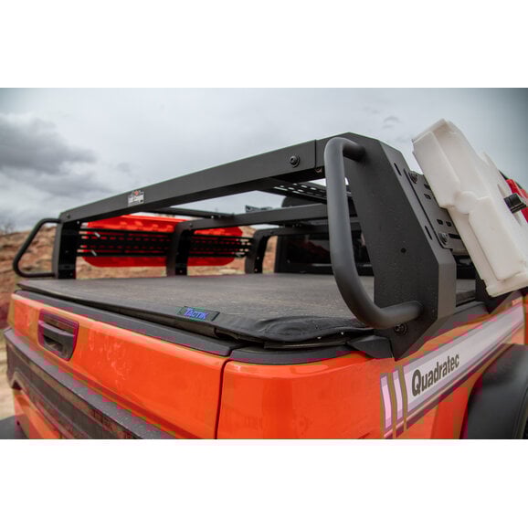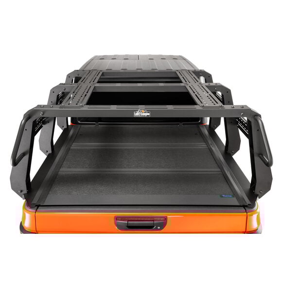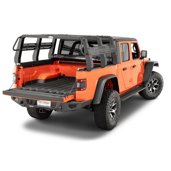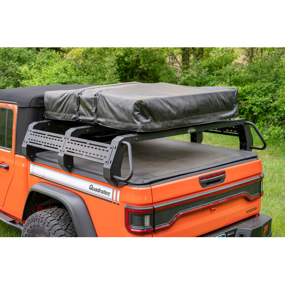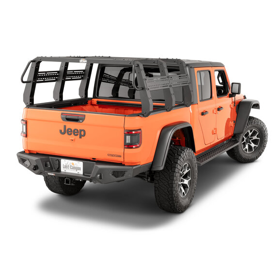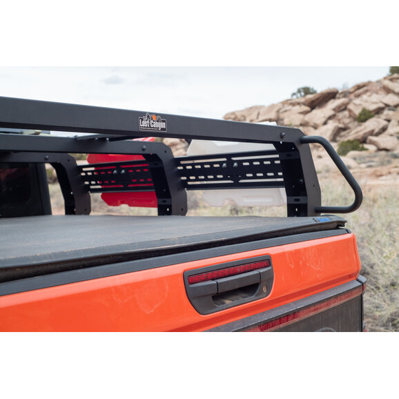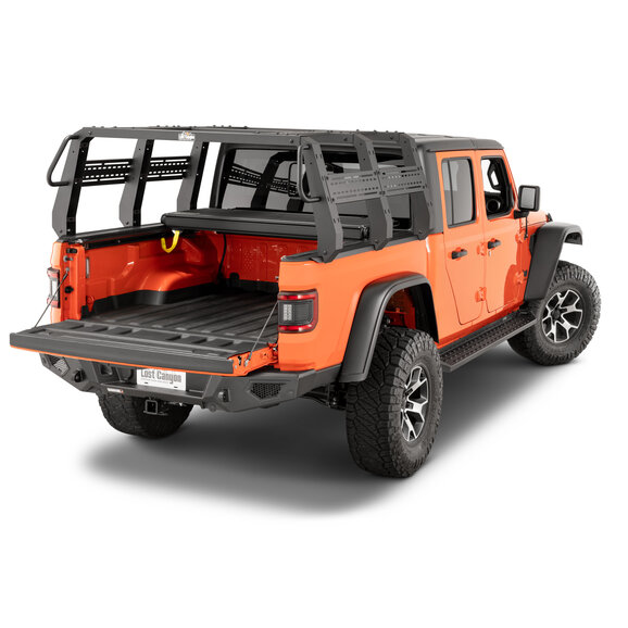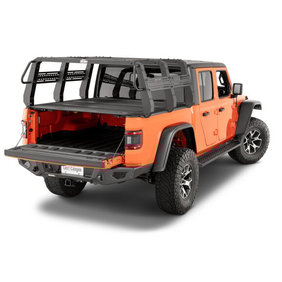 The Lost Canyon® Truck Bed Rack is exclusively engineered to fit 2020-24 Jeep Gladiator JT models, and utilizes a heavy-duty steel construction for maximum durability while easily supporting rooftop tents and cargo. This rack's innovative design allows the use of any tonneau cover to protect gear inside the truck bed, while handy grab handles provide quick access to the rack's top. Integrated side cargo panels grant plenty of space for mounting gear. No additional hardware or brackets are needed for installation. Kit includes truck bed rack system and all mounting hardware.