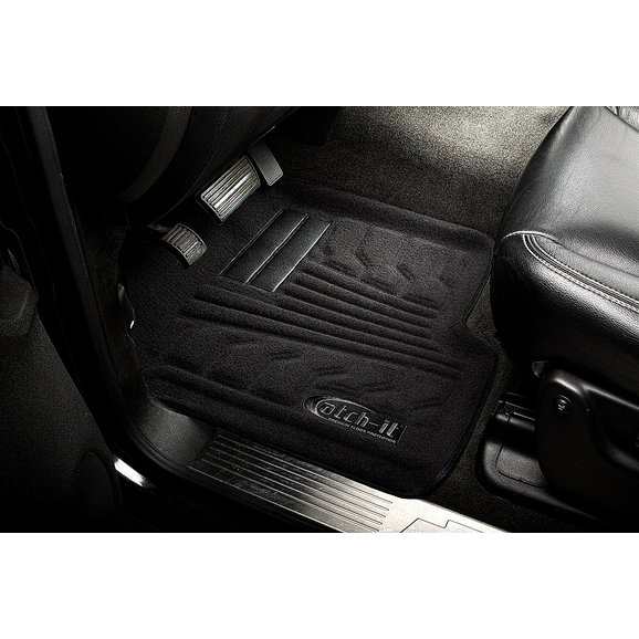Protect the factory carpet in your Jeep Grand Cherokee WK with these stylish Carpeted Catch-It Front Floor Liners. These heavy-duty, all-weather liners are molded to provide a superb fit and serious coverage. The aggressively nibbed underside ensures these liners will stay securely in place. An elevated edge keeps liquid from running off the liners. Built to outlast your vehicle. Made in the USA