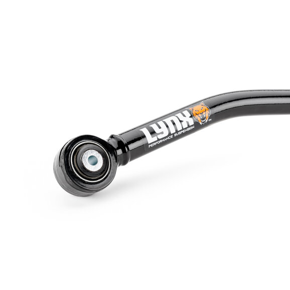 This Lynx Performance Suspension Adjustable Front Track Bar is specifically engineered for 1997-2006 Jeep Wrangler TJ models and utilizes durable 1026 carbon steel tubing for long-lasting performance no matter where your adventures lead. Both track bar ends are adjustable, allowing you to precisely center your Jeep's axles for optimal ride quality — especially important for those with a suspension lift. Utilizes dual durometer 'Quadraflex' bushings to help eliminate noise, vibration, harshness and bump steer. Includes one front adjustable track bar and features a limited lifetime warranty.