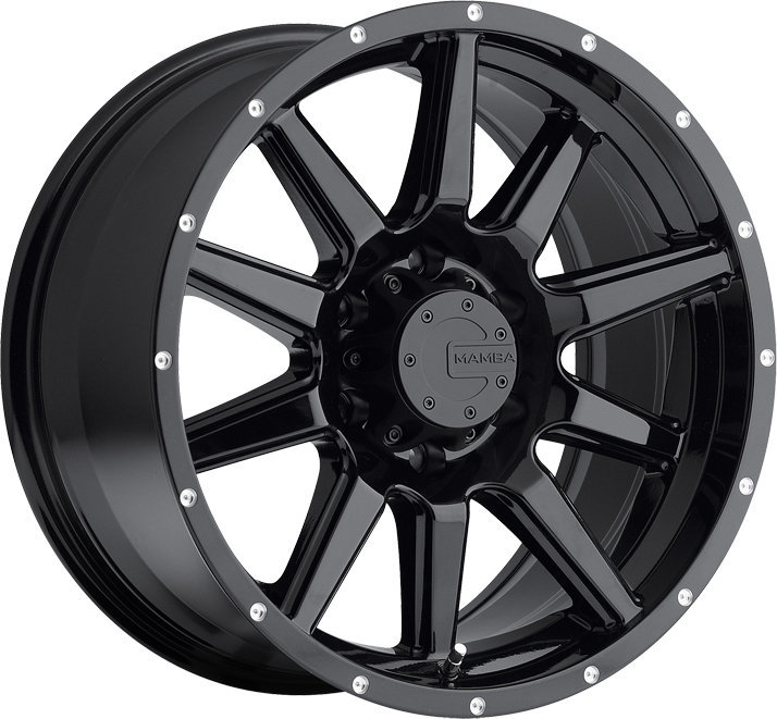 The M15 wheel by Mamba Offroad is an aggressive wheel design. The 10 spoke design features an unique staggered profile. The durable painted gloss black and machined drill holes are covered by Mamba's 1 year finish warranty. Bolt on style center cap included with matching black hardware.