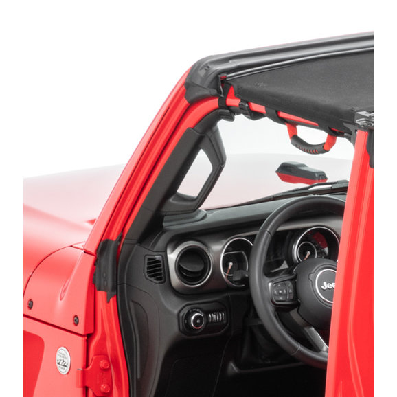 MasterTop innovation at its best! Introducing the new Integrated Grab Handle Summer Bimini Top Plus for Jeep® Wrangler JL 2-Door. These new tops not only protect you from the summer sun but have also built-in grab handles making the entry and exit of your vehicle easy. This patent-pending new design is constructed of durable luxurious 3-layer 30 oz MasterTwill Fabric or durable 25 oz Black Diamond Sail Cloth Fabric with your choice of either red or black webbed grab handles. Each Summer top is a “Bimini plus” design covering both driver and back seat passengers for the ultimate in protection. Since the grab handles are a part of the installation process and installed at the factory, the cost of this top system is less than if you purchased each part individually; Save money, add convenience! JL Bimini style tops use MasterTop’s exclusive no windshield header design with a front weather seal.
