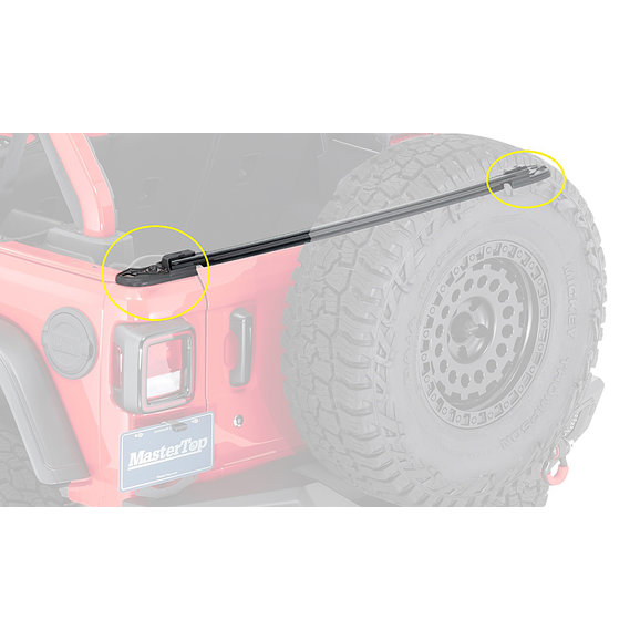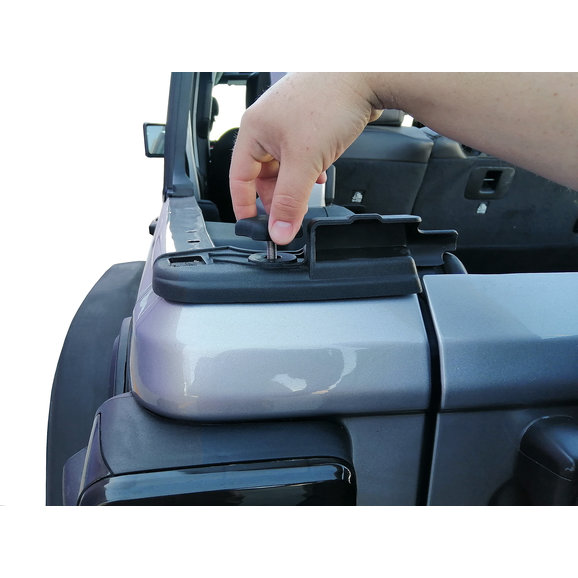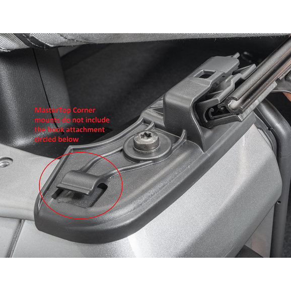 If your Wrangler JL/JLU did not come with a factory soft top, and you are looking to install a soft top, tonneau cover, cargo net, or similar accessory you need additional hardware. The MasterTop Tailgate Bar Retainer Kit is a sturdy attachment point for both OEM and aftermarket tailgate bars. The modified design of these mounts does not include the “tab” for the factory soft top but these can be used with a soft top installation. The retainer installs in seconds by simply slipping over the factory belt rail on your Jeep’s tub and is bolted down using included hand-tightening screw knobs. Each Kit includes a pair of retainers (both left and right) and a pair of screw knobs. Corner Tailgate Bar Retainers have a three-year warranty.