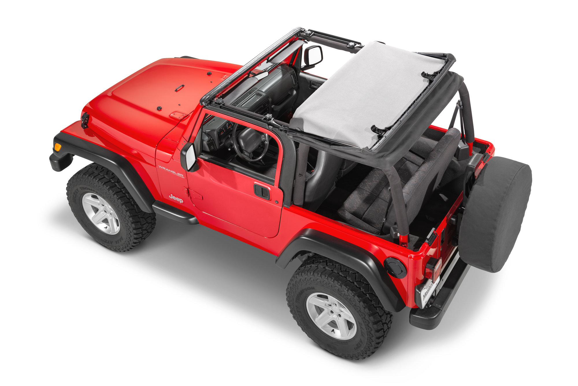 **Note** Image shown on 97-06 TJ for illustration purposes.Quality Fabric Choices: The SkyMaster Replacement Fastback top is available in your choice of 2 distinct fabrics. Choose between OE quality 28 oz. U.S. made black diamond material or MasterTop's exclusive 30 oz. 3-layer MasterTwill fabric.