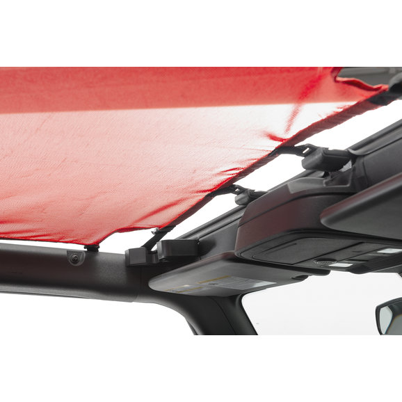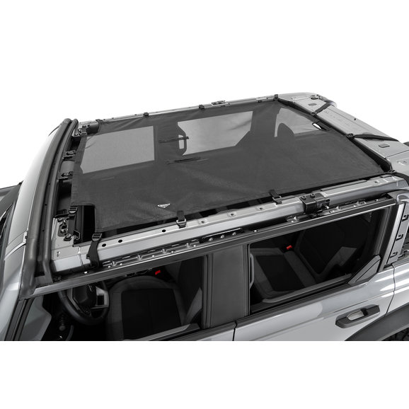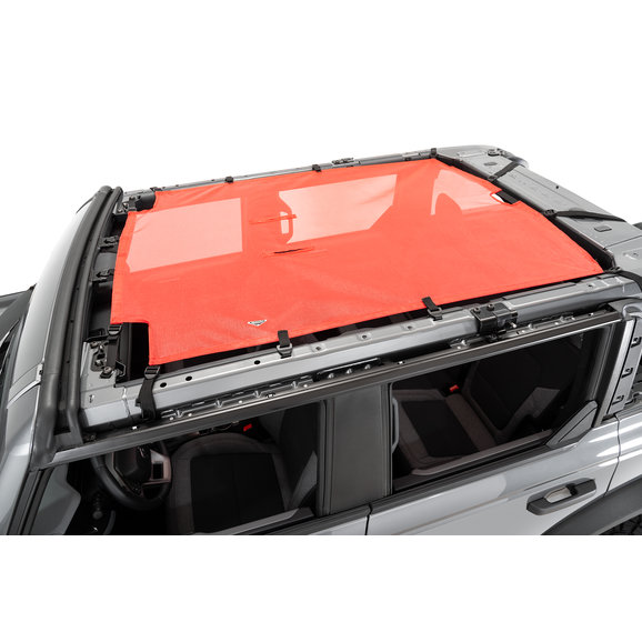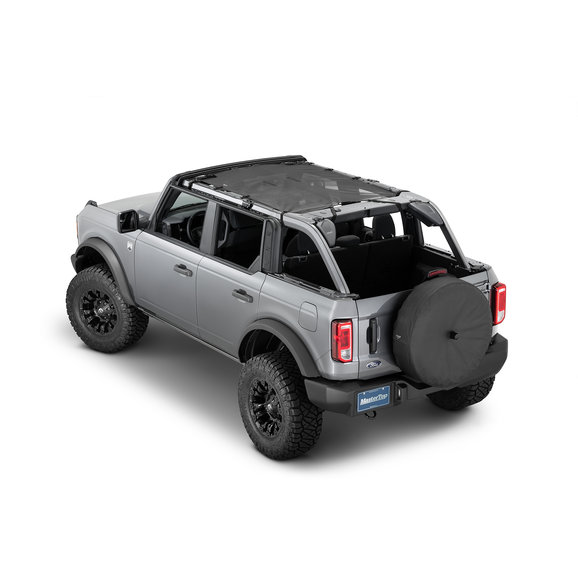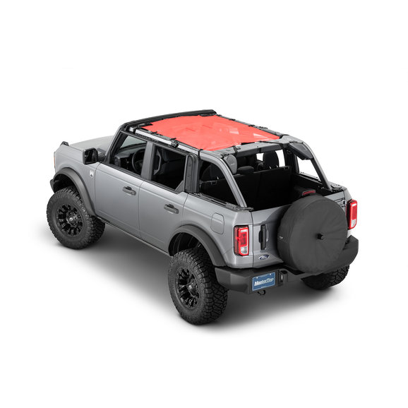 MasterTop's Freedom Mesh Bimini Top Plus is an ideal way of driving a 2021-25 Bronco, but without burning from sun exposure. This summer top solution can be left on when hardtop is reinstalled and material provides generous coverage over front and rear seats. Tops constructed with extra durable mesh fabric originally developed for commercial trucking to keep cargo in place and blocks up to 70% of the sun’s harmful UV rays. Includes heavy-duty webbing at the edges for strong attachment points no available on other bimini tops. Stylish two-piece design allows both front and rear portions attached, or just the front Bimini over driver and passenger. 'Flap-free' design easily attaches with durable web straps and buckles. Rear mesh portion utilizes factory mounting points and does not require drilling. Available in black or red and features a three-year warranty.