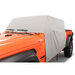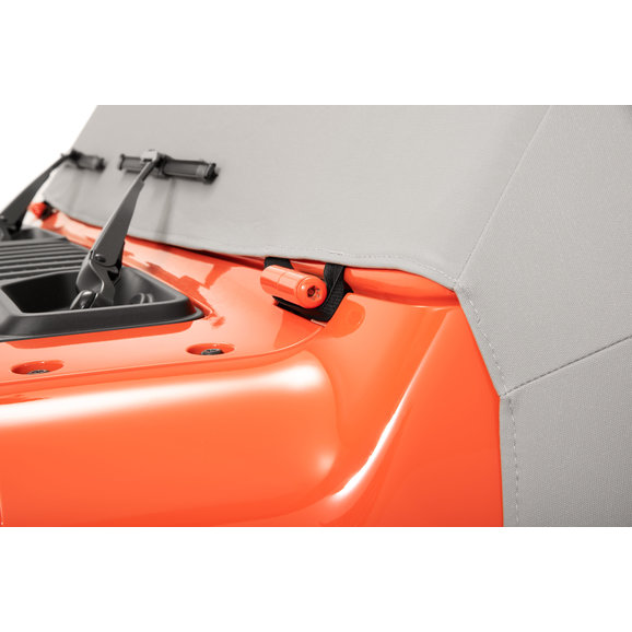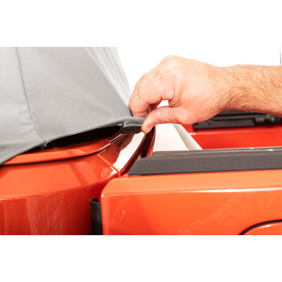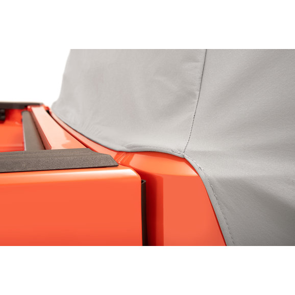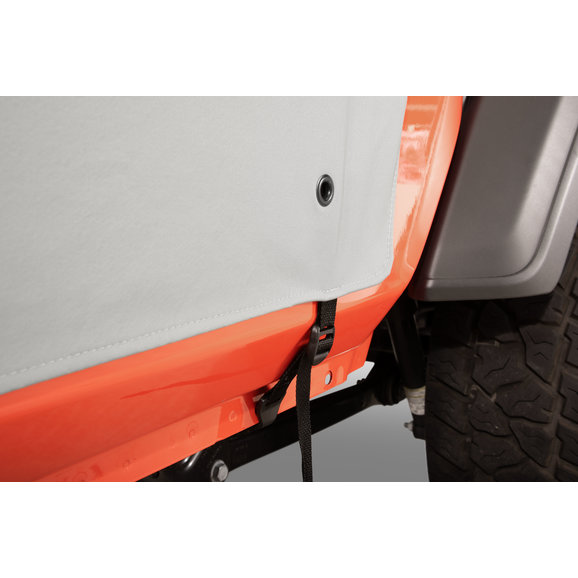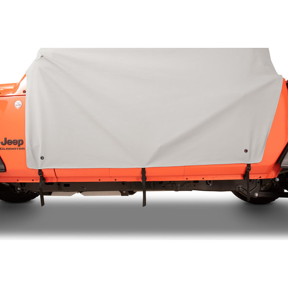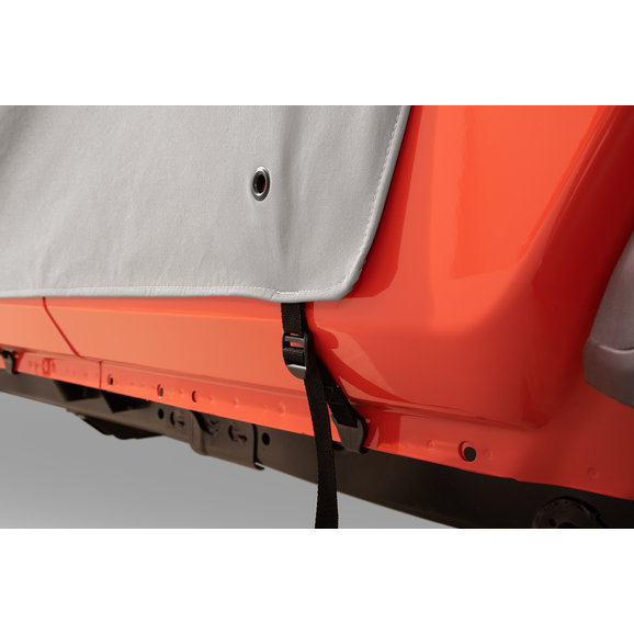 The Full Door Cab Cover from Mastertop offers a quick and easy way to protect the open cab area of your Jeep Gladiator JT when the top is removed. Constructed using durable non-woven vinyl covered fabric that will provide the ultimate in protection for sudden showers, dust, dirt, or harmful UV rays that can fade the exposed interior over time. The waterproof material and location of the seams help keep water from pooling and seeping through. The cab cover features long panels on each side that give complete coverage for when the doors are removed. Attach the cab cover easily to the underside of the JT with the included straps, and the belt rail design around the rear of the cab body makes a complete seal. Backed by a 3-year warranty.