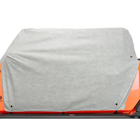 Protect your interior from the elements with the 5 Layer Full Door Cab Cover. Lightweight yet weatherproof 5-layer car cover fabric is used in creating these MasterTop cab covers. Each cover is custom-designed to fit over your Jeep Wrangler JL Unlimited 4 Door. Options are available for when the soft top or hardtop has been removed from the vehicle, when the factory soft top is folded down on the back of the Jeep, or over your factory Soft or hardtop. The durable 5-layer fabric is very lightweight yet it holds the water out providing breathable protection for your open cab vehicle. This is the perfect weatherproof solution when you are traveling with a Bimini Top, without a top, or with a summer mesh top. The long side flaps fit over your door area to protect the interior of the vehicle if the doors are removed. The included handy storage bag features a metal lock and cable system that ensures the cover secures properly to the vehicle. Limited 3-year warranty.