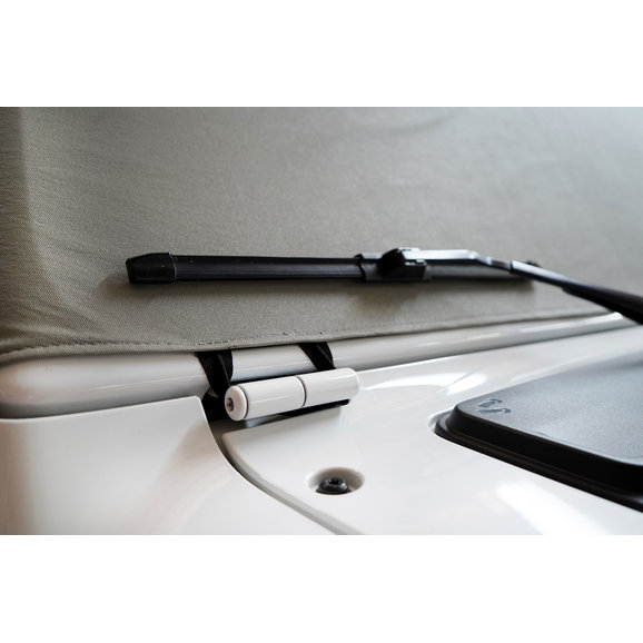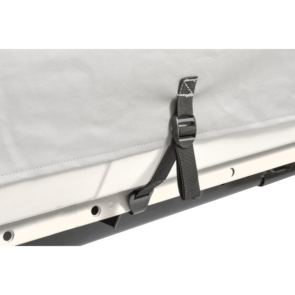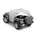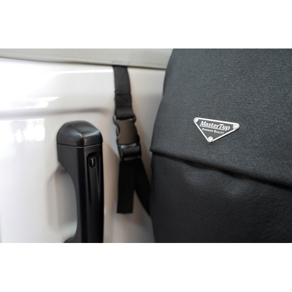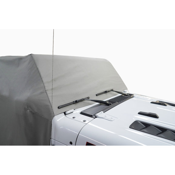 Mastertop's Full Door Cab Cover offers quick and easy protection from the elements at your fingertips. These durable covers fit over your vehicle’s windshield and sports bars when your soft top or hardtop is removed providing protection from the sun and those sudden showers. Each cover is constructed of durable non-woven vinyl-covered fabric for the ultimate in durability and vehicle protection from water, dust, dirt, and those harmful UV rays. The fabric itself is waterproof and the seams are located away from pooling water making this cab cover the ultimate weatherproof design. Each cab cover has a long panel on each side of the cover that protects the door opening from water and debris when the doors are removed and the cover is installed. The light gray color reflects the sun and keeps the interior of your Jeep cool. This is a great cover for parking your Jeep during the day while at the office or at school or in the garage during those long winter months.