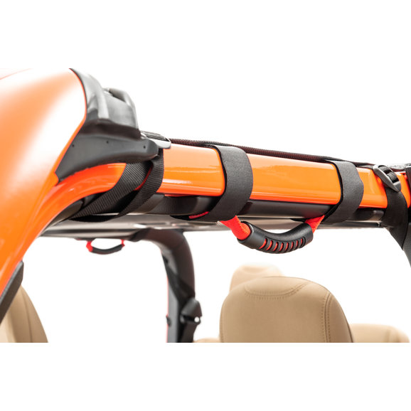 MasterTop innovation at its best! Introducing the new Integrated Grab Handle Mesh Summer Bimini Top for Jeep® Wrangler JL & Gladiator JT. These new tops not only protect you from the summer sun but also have built-in grab handles making the entry and exit of your vehicle easy. This patent-pending new design is constructed of tear-proof sun-blocking mesh with either red or black webbed grab handles. Each Summer top is a “Bimini” design covering both front passengers for the ultimate in protection. Since the grab handles are a part of the installation process and installed at the factory, the cost of this top system is less than if you purchased each part individually; Save money, add convenience! All MasterTop Mesh tops do not require an additional windshield channel for installation and can be used under your factory Hardtop without removing the mesh top: install and keep on your vehicle for all four seasons. Backed by Mastertop 3 Year Warranty!