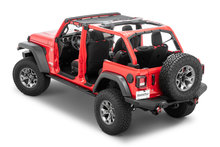 MasterTop innovation at its best! Introducing the new Integrated Grab Handle Mesh Summer Bimini Top for Jeep® Wrangler JL & Gladiator JT. These new tops not only protect you from the summer sun but also have built-in grab handles making the entry and exit of your vehicle easy. This patent-pending new design is constructed of tear-proof sun-blocking mesh with either red or black webbed grab handles. Each Summer top is a “Bimini” design covering both front passengers for the ultimate in protection. Since the grab handles are a part of the installation process and installed at the factory, the cost of this top system is less than if you purchased each part individually; Save money, add convenience! All MasterTop Mesh tops do not require an additional windshield channel for installation and can be used under your factory Hardtop without removing the mesh top: install and keep on your vehicle for all four seasons. Backed by Mastertop 3 Year Warranty!