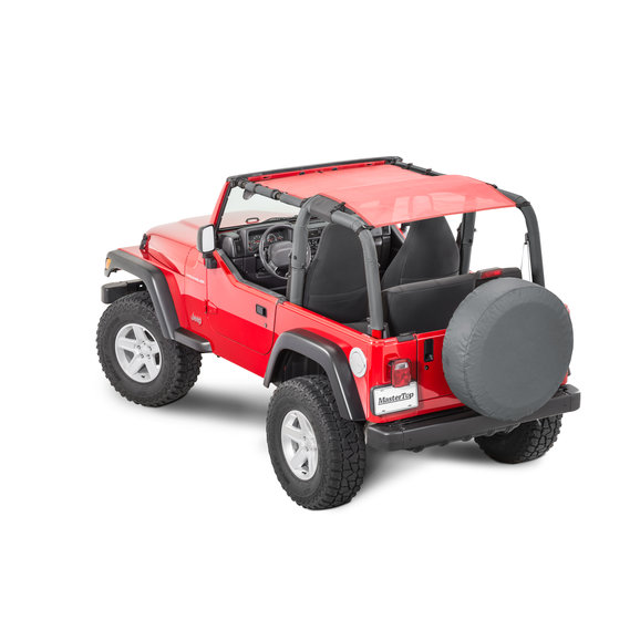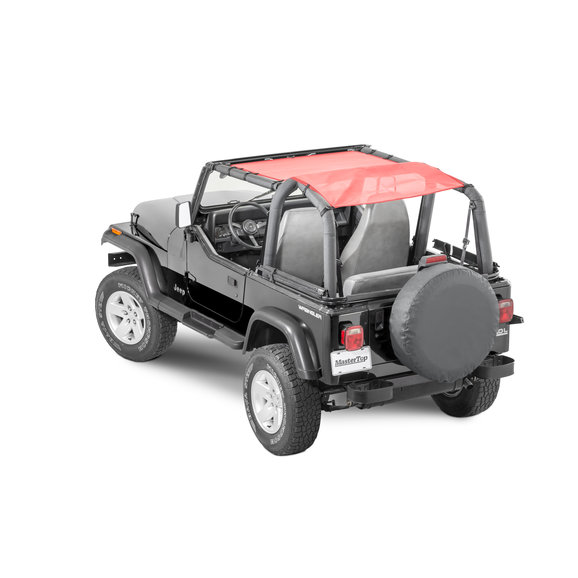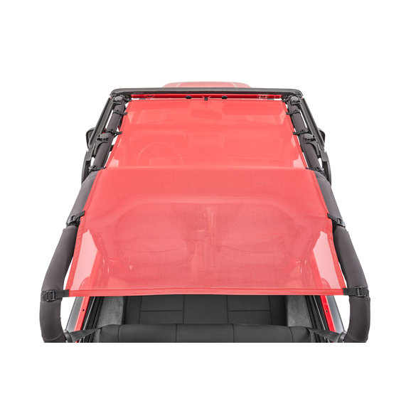 Block the sun but keep the open air experience with a ShadeMaker Mesh Bimini top from MasterTop. These easy to install tops attach to the sport bars of your Jeep with straps and buckles providing protection from the sun for you, your front seat passenger and the rear seat occupants. No header channel or tools required to install! ShadeMaker tops are constructed of extra durable commercial grade mesh fabric originally developed for over the road trucks to protect cargo from flying out of the cargo space. The added benefit of this durable mesh is its ability to block up to 70% of the sun’s harmful UV rays. All ShadeMaker Mesh tops encapsulate heavy duty webbing on the edges to provide the most durable attachment points found in any mesh top design. Install this top and forget it! It is always there when you need it most. Available in both black and red mesh, these tops are a must for any Jeep owner.