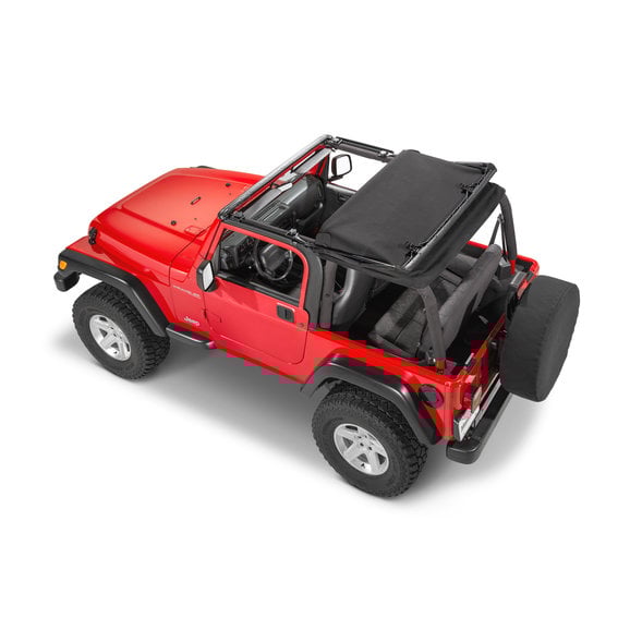 Complete Top Setup: This complete top kit includes all of the necessary components for installation on your Wrangler TJ. New Topdeck, door surrounds, tailgate bar and the front flip-back bow assembly make this kit a must-have to enjoy the open air.