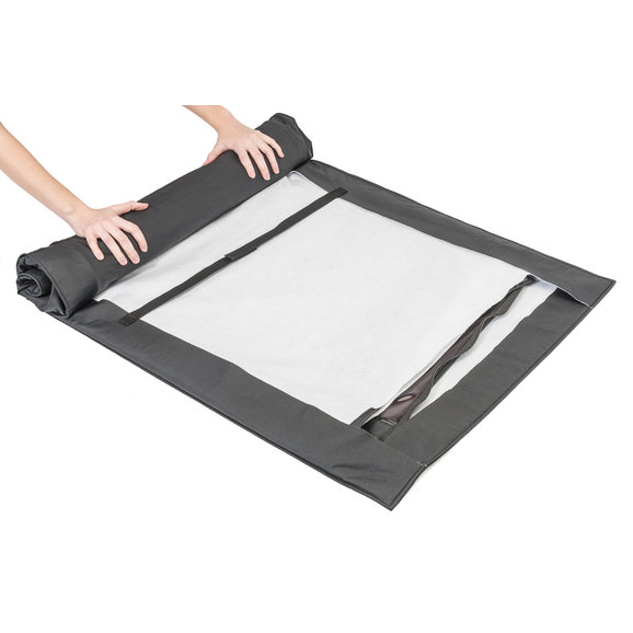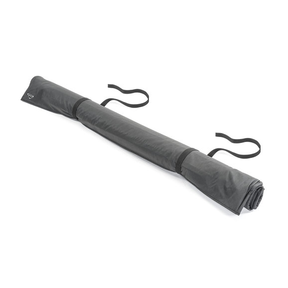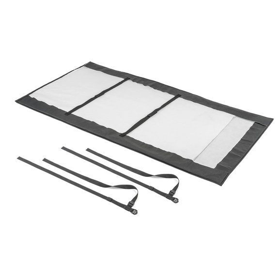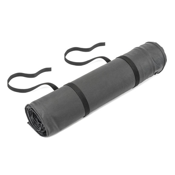 The Soft Top Window Protection Roll will pamper your soft top windows when removed and protect them from scratches, creases and sticking together in hot weather. The Window Protection Roll’s exterior is constructed of durable black vinyl coated OEM Approved Soft Top Fabric material with a soft non-woven backing that pampers your soft top windows. The interior also features 3 static resistant, ultra-soft felt panels that completely separate and protect your top’s PVC glass. The unique design allows the windows to be rolled for storage behind the rear seat for all Jeeps or for 2006 and older Jeeps you can roll your windows in the wider direction that stores and secures on top of your folded down soft top behind the rear sport bar with the included straps. The Soft Top Window Protection Roll secures both rear quarter windows and the rear window.
