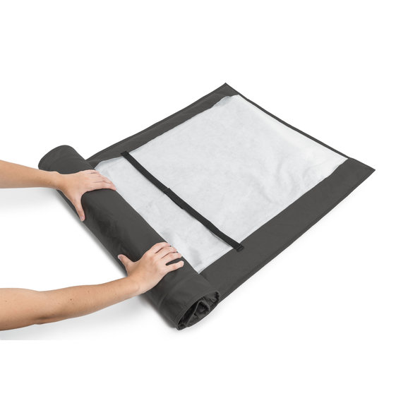 Soft Top Window Protection Roll in MasterTwill Fabric will pamper your soft top windows when removed and protect them from scratches, creases and sticking together in hot weather. The Window Protection Roll in MasterTwill has an exterior that is constructed of the luxurious heavy duty fabric used on premium European Sports Car and provides astonishingly good looks with an interior material that is soft non-woven backing that pampers your soft top windows. The interior also features 3 static resistant, ultra-soft felt panels that completely separate and protect your top’s PVC glass. The unique design allows the windows to be rolled for storage behind the rear seat for all Jeeps or for 2006 and older Jeeps you can roll your windows in the wider direction that stores and secures on top of your folded down soft top behind the rear sport bar with the included straps. The Soft Top Window Protection Roll secures both rear quarter windows and the rear window. MasterTwill will surely impress with less fading than conventional Sailcloth fabrics and nearly self cleaning when rinsed. Be sure and see the entire line of Freedom Panel and Full Door storage solutions in matching handsome MasterTwill.
