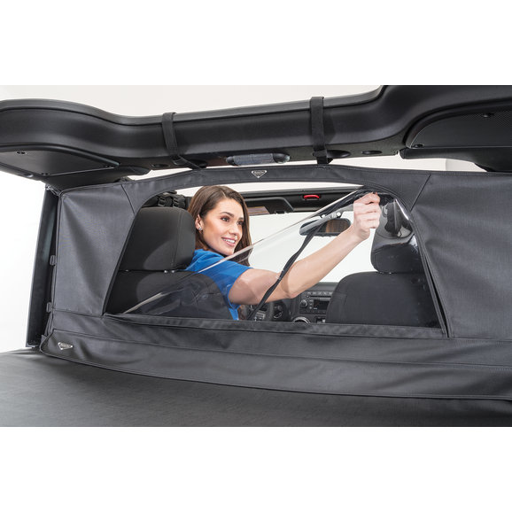 Traditional soft tops or hard tops are great year-round solutions, but most drivers like to remove these parts during the summer months. However, leaving the entire cab open all the time may not be practical for everyone. The MasterTop Summer Combo Plus provides protection from the weather for both driver and passenger as well as any back seat passengers while traveling during those warm spring and summer months. These “summer soft tops” are constructed of durable soft top Fabric and feature no-drill installation directly to your sport bar using straps, buckles, and hook & loop fasteners. The MasterTop Zip Down Wind Stopper creates a barrier to stop the "backdraft" to keep the inside cab dry and warm. The Tonneau Cover is a custom rear vehicle cover that protects your belongings from the weather and keeps your valuables out of sight from prying eyes. Though not completely waterproof, these durable rear vehicle covers attach to your factory belt rail/tailgate bar system(Factory Tailgate bar required for installation). All MasterTop Black Diamond Summer Combos use up-graded 25 oz Sail Cloth fabric for the ultimate in durability and great looks. This is a MasterTop exclusive feature found in no other aftermarket summer soft top accessory package!