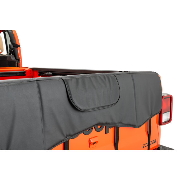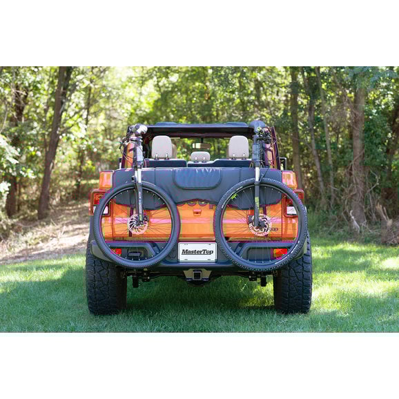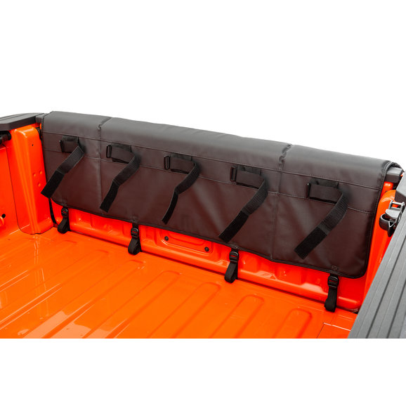 It is now easy to haul your bikes in the back of your Jeep Gladiator JT with the MasterTop Tailgate pad. This custom-fit design attaches to your tailgate with four easy-to-install straps providing a durable pad to hang your bikes on. The tough soft top vinyl wrapped around a thick pad provides durable protection for the front and rear of your tailgate. The backside of the pad is a soft-backed soft top fabric that will pamper your vehicle's paint. A special hook and loop flap opens to expose your tailgate latch making it easy to open and close your tailgate when not carrying bikes The curved design works around your factory backup camera as not to block your backup vision when bikes are properly positioned. There are 5 hook and loop straps on the top/inside o the pad to keep bikes from shifting. This is a must-have item if you carry bikes! Covered by a Limited 3-Year Warranty.