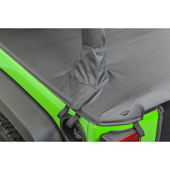 Complete the summer accessory package with a MasterTop Tonneau cover. These custom rear vehicle covers protect your belongings from the weather and keep your valuables out of sight from prying eyes. Constructed of Durable 25 oz Black Diamond Fabric, each Tonneau is custom fit for your Jeep and features sport bar “sleeves” that secure around the sport bar. Though not completely waterproof, these durable rear vehicle covers attach to your factory belt rail/tailgate bar system (Factory Tailgate bar required for installation-not included). Each MasterTop Tonneau incorporates a front-facing zipper attachment for use with a MasterTop Wind Stopper to create the ultimate summer soft goods combo. All MasterTop Black Diamond Tonneau Covers use up-graded 25 oz Sail Cloth fabric for the ultimate in durability and great looks. This is a MasterTop exclusive feature found in no other aftermarket summer soft top accessory!MasterTop Wind Stopper to create the ultimate summer soft goods combo. All MasterTop Black Diamond Tonneau Covers use up-graded 28 oz Sail Cloth fabric for the ultimate in durability and great looks. This is a MasterTop exclusive feature found in no other aftermarket summer soft top accessory!