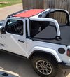 The MasterTop Tonneau Cover is the perfect add on for those summer adventures. Designed to work with your factory soft top or hard Top Removed, this versatile summer accessory gives you that open-air experience while protecting your vehicle from those sudden showers. Constructed of durable 25 oz pinpoint Black Diamond Sailcloth or exclusive 3-layer 30 oz MasterTwill fabric with reinforced straps and heavy-duty hook and loop fasteners, rear cargo covers provide great wind and weather protection. Each Tonneau Cover attaches to your 2 Door JL Wrangler without the use of any extra components. Attaching with durable vinyl straps with reinforced buckles and to factory mounting points on the body tub, the Tonneau cover covers the area behind the seat protecting it from dirt and sudden showers while driving. Though this cover is not waterproof, it does provide interior protection from wandering eyes and debris. Tonneau Covers are available for both hard and soft top 2 Door JL Wranglers. The Soft top models use your factory tailgate bar for Tonneau cover install. The hard-top models should be used with a MasterTop Bimini Plus Top and incorporates a unique built-in tailgate closure system to seal the tailgate so no Tailgate Bar is necessary. Limited 3-year warranty.