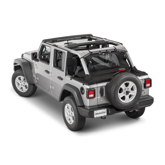 The MasterTop Tonneau Cover is the perfect add on for those summer adventures. Designed to work with your factory soft top folded down or your hard Top Removed, this versatile summer accessory gives you that open-air experience while protecting your vehicle from those sudden showers. Constructed of durable 25 oz pinpoint Black Diamond Sailcloth or exclusive 3-layer 30 oz MasterTwill fabric with reinforced straps and heavy-duty hook and loop fasteners, rear cargo covers provide great wind and weather protection. Each Tonneau Cover attaches to your 4 Door JL Wrangler Unlimited without the use of any extra components. Attaching with durable vinyl straps with reinforced buckles and to factory mounting points on the body tub, the Tonneau cover covers the area behind the seat protecting it from dirt and sudden showers while driving. Though this cover is not waterproof, it does provide interior protection from wandering eyes and debris. Tonneau Covers are available for both hard and soft top 4 Door JL Wranglers. The Soft top models use your factory tailgate bar for Tonneau cover install. The hard-top models should be used with a MasterTop Bimini Plus Top and incorporates a unique built-in tailgate closure system to seal the tailgate so no Tailgate Bar is necessary. Limited 3-year warranty.