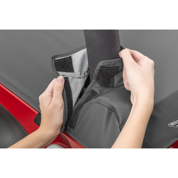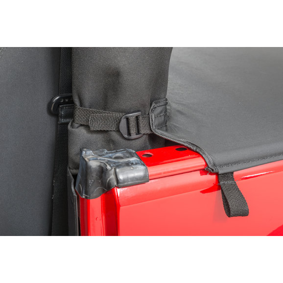 Protect your belongings from the weather and keep prying eyes away by installing a MasterTop Tonneau Cover. These custom-fit covers are constructed of durable 25 oz pinpoint Black Diamond Sailcloth fabric with reinforced straps and heavy-duty hook and loop fasteners Each Tonneau attaches to the factory mounted belt rail system (not included) and incorporates a seal around the roll bar using durable hook and loop fasteners. This Tonneau cover is designed to fit with your 92-95 Wrangler factory soft top bows removed from the vehicle. Hard Top owners using this product will need to purchase bolt-on belt rail attachments and a Tailgate bar for proper installation. Though this cover is made of waterproof materials, it is not waterproof. Water can enter the cab in-between the roll bar sleeves as well as possible water flowing towards the front of the vehicle due to pooling water during heavy downpours. This cover must be removed when re-installing your soft top or putting the hard-top back on your vehicle. Three-year limited warranty.