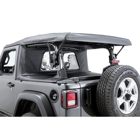 The Ultimate Summer Soft Top Combination for your Soft Top equipped Wrangler JL 2-Door! This two-piece kit includes a custom fit Wind Stopper Plus cab curtain and Tonneau cover that when used together helps to close up the cab area of your Wrangler JL. This Summer combo is designed to work with your factory vinyl or twill soft top when the windows are removed. All components are constructed of durable US made 28 oz pinpoint Black Diamond Sailcloth fabric or MasterTop’ s exclusive 30oz 3-layer luxury MasterTwill fabric with reinforced straps and a crystal-clear rear zip-down window. This unique design easily attaches to the vehicle and factory door surrounds creating a great barrier to the wind and rain. Though not completely waterproof, this summer combo is a great alternative for summer driving with your soft top windows removed providing some protection from sudden showers and dirt without re-installing your hard to use soft top windows. The Wind Stopper plus has a zip-down rear window to let the airflow while the custom fit Tonneau cover is attached to the Wind Stopper with a durable zipper and hook and loop fastening system. The Wind Stopper and Tonneau are custom matched and will not work with any other Wind Stopper or Tonneau type product. This two-piece package requires the use of factory-style door surrounds and Tailgate bar/clips for installation. 3-year limited warranty.