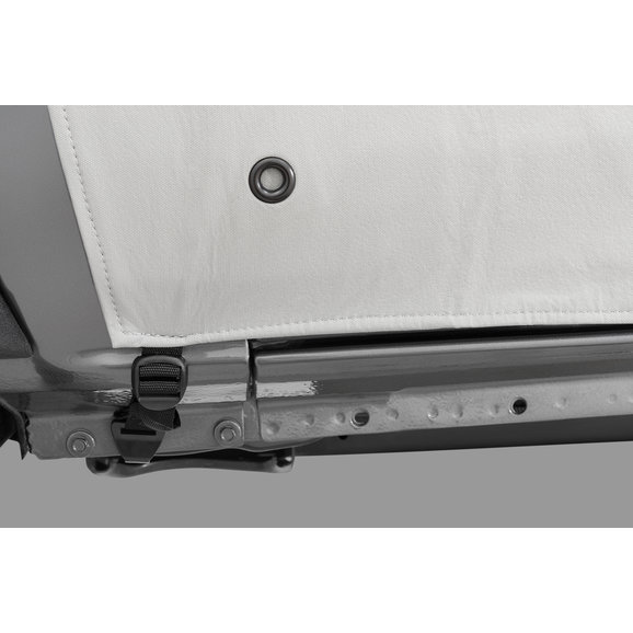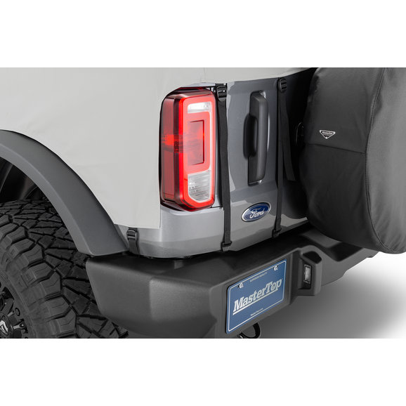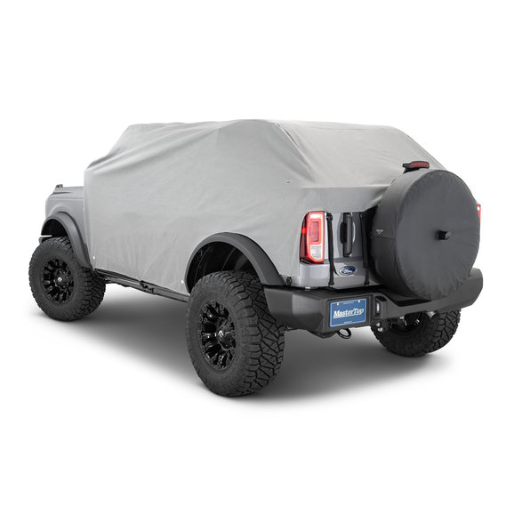 Protect your interior from the elements with a Mastertop Weatherproof Full Door Cab Cover for your 4-Door Bronco. You have the option of choosing the Lightweight yet weatherproof 5-layer Cab Cover fabric or the Vinyl Cab Cover for quick protection from sudden showers. Each cover is custom-designed to fit over your Ford Bronco when the soft top or hardtop has been removed from the vehicle. The durable 5-layer fabric is very lightweight yet it holds the water out providing breathable protection for your open cab vehicle. This is the perfect weatherproof solution when you are traveling with a Bimini Top, without a top, or with a summer mesh top. The 5-Layer Vinyl Top is a heavier-duty material yet is still breathable. The long side flaps fit over your door area to protect the interior of the vehicle if the doors are removed. The included handy storage bag features a metal lock and cable system that ensures the cover secures properly to the vehicle. Limited 3-year warranty.