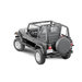Due to the aerodynamics of a Jeep®, wind, and rain flows over the top of the vehicle and back inside the cab while driving without a top or with a Bimini style top. This “backdraft” can blow air, rain, and items inside the Jeep forward creating a real mess. The MasterTop Zip Down Wind Stopper creates a barrier to this backdraft keeping the inside cab dry and warm. Constructed of Durable 25 oz Sail Cloth Soft Top Fabric with an ultra-clear press polished window, the Wind Stopper is a must for those open-air driving adventures. Each Wind Stopper easily attaches to the factory sport bar using heavy-duty nylon straps and buckles. This ease of installation allows the Wind Stopper to be kept on the vehicle during the winter months keeping the warm air inside the cab. This is the perfect all-season accessory! Each MasterTop Wind Stopper features an exclusive zippered window for added airflow during those hot summer days. Only MasterTop Wind Stoppers feature a built-in zippered rear flap that can easily be attached to a MasterTop Tonneau Cover for the ultimate summer soft top combination. All MasterTop Black Diamond Wind Stoppers use up-graded 25 oz Sail Cloth fabric for the ultimate in durability and
