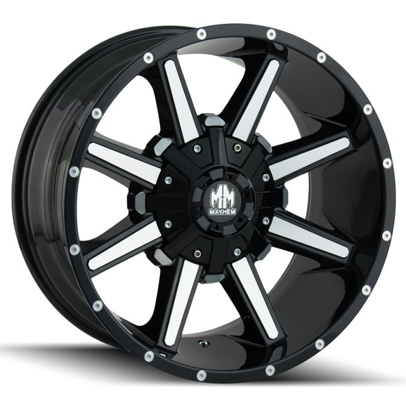 Improve the look of your Jeep with the Mayhem Arsenal Series 8104 Wheel. These heavy-duty wheels feature a large center hub with an 8-spoke design. Not only do they look great on the street, but they are also tough enough to perform off-road. Mayhem offers their Series 8104 wheels in two finish options. Choose from either Gloss Black with Machined Face or Chrome.
